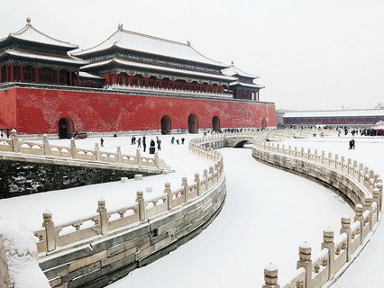 Scenic spots: 1. The hall and the courtyard of supreme harmony, 2. The meridian gate, 3. the hall of supreme harmony, 4. the hall of complete harmony, 5. the hall of preserving harmony, 6. the huge of stone carving, 7. the hall of union, 8. the palace of earthly tranquility, 9. the imperial garden, etc.