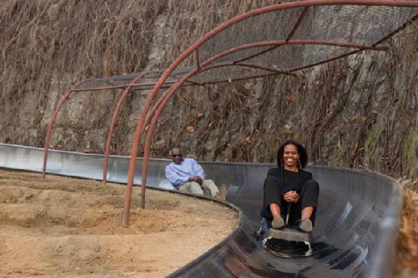 Michelle Obama Taking a Toboggan down the Mutianyu Great Wall