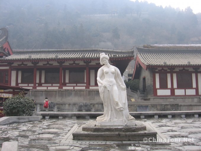 The Huaqing Spring is located about 35 kilometers east of Xi’an. Historically, during the Western Zhou Dynasty the construction of the Li Palace was undertaken on this spot. In the Qin Dynasty, a stone pool was built and was given the name Lishan Hot Springs. The site was enlarged during the Han Dynasty, and was renamed the Li Palace. During the Tang Dynasty, Emperor Taizong ordered the construction of the Hot Springs Palace. The present-day site is only a small part of the Tang Huaqing Palace. The Huaqing Hot Springs which we see today was rebuilt on the site of the Qing Dynasty structure. The palace covers an area of 85,560 square meters. Entering the West Gate of Huaqing Hot Springs, you will see the Nine-Dragon Pool, the Lotus Flower Pool and the Frost Drifting Hall, etc. All these structures were rebuilt in 1959 according to Tang architectural style.