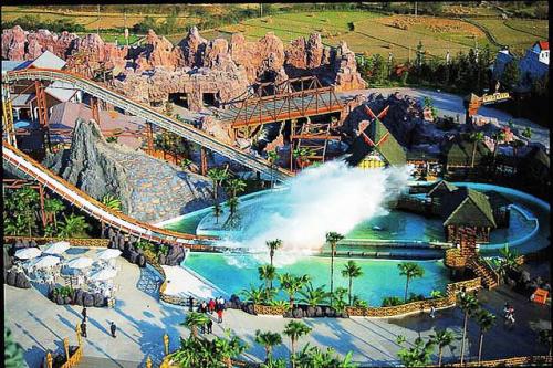 Merryland Theme Park, located in the suburbs of Guilin City, combines the fun and excitement of a theme park, with a state of the art golf resort and hotel. The theme park occupies an area of over 988 acres. Merryland Theme Park is fun for all ages, and has something for everyone. The park has many themed areas. Each themed area’s architecture, employees’ costuming, shows, and food are designed to match their respective areas.