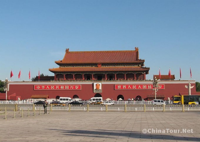 The Tian’anmen Gate was built in Ming Dynasty and it lies to the north of the square. The Monument to the People’s Heroes dominates the center, the Great Hall of the People and the National Museum of China to the west and east of it, as well as The Chairman Mao Memorial Hall and the Qianmen gate, sit in the south of the square.